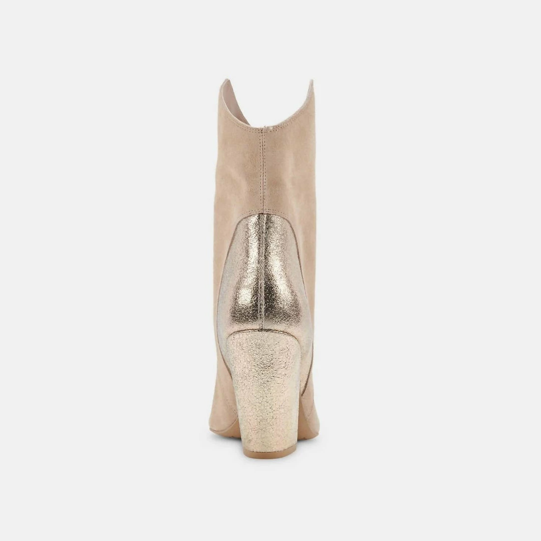Work those angles. NESTLY’s patchwork motif puts a fresh spin on the western-inspired boot, thanks to pieced-together angular swaths of soft suede. Pair her with a floaty midi skirt to master the reimagined western trend.Suede Leather UpperSynthetic OutsoleTextile + Synthetic Lining9.5″ Shaft Height11.6″ Leg Circumference3.6″ Heel Height
