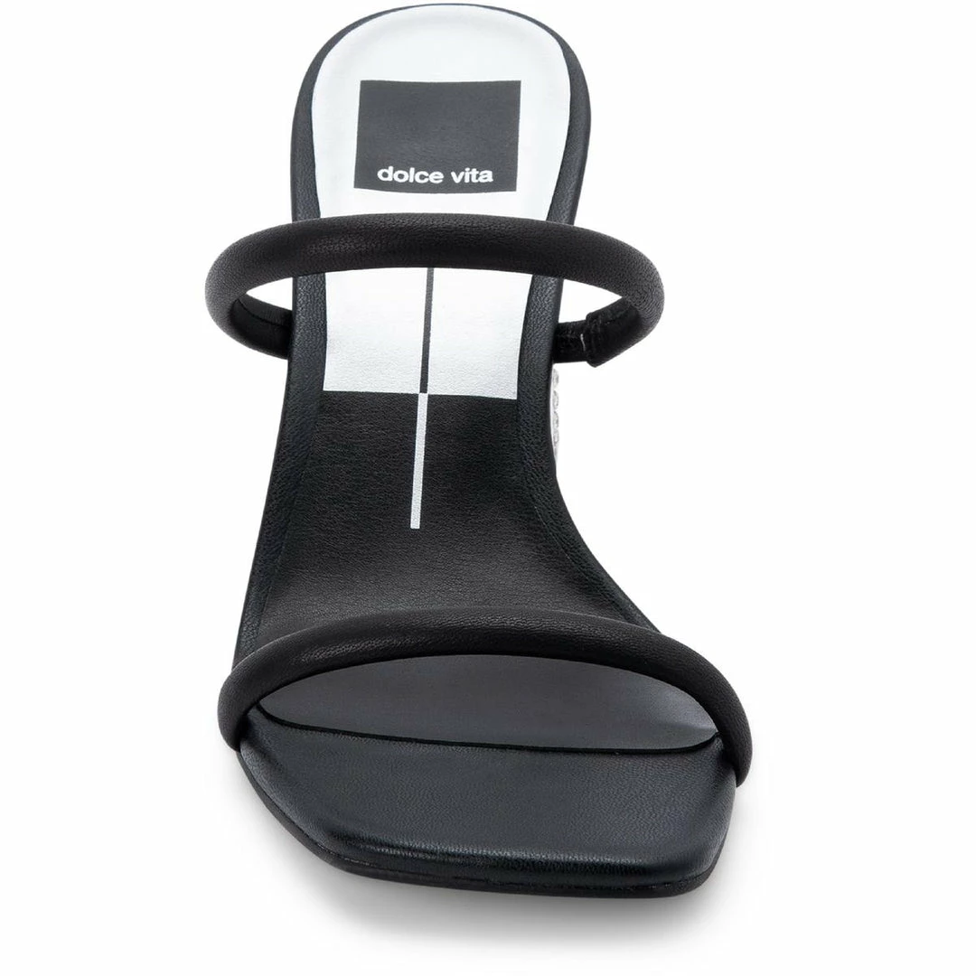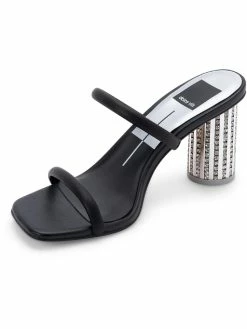 Make a stylish statement in the Noles Disco heel sandal by Dolce Vita. Made of faux leather straps with rhinestone detail on heel. Slip-on style for easy & stylish look. Features lightly padded footbed. Heel measures 2.75″ with manmade outsoles.